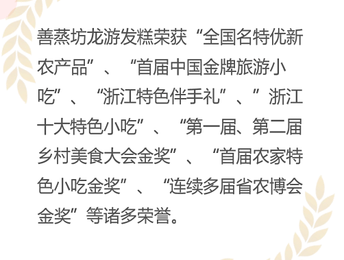 善蒸坊,身负 “浙江老字号”“中华老字号” 光环,历经岁月沉淀,是龙游发糕制作技艺等非遗文化的承载者。其荣获的 “全国名特优新农产品”“浙江特色伴手礼” 等诸多荣誉,是市场对其产品品质与文化价值的双重认可。从非遗工坊到文化传承示范基地,善蒸坊将传统工艺与现代企业管理结合,既有老字号的文化厚重,又具备适应市场的创新运营能力 。